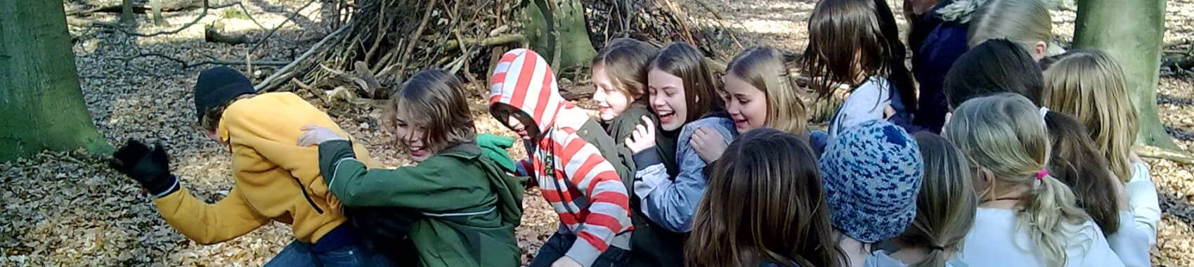 Während der Ferien können Kinder den Wald auch einmal ohne Eltern oder Lehrer*innen bei uns genießen. Liebevoll und kompetent betreuen wir sie in kleinen Gruppen eine Woche lang, bis zu sieben Stunden pro Tag. Wir gehen auf Spurensuche, bauen Hütten, schnitzen Werkzeuge, toben herum, machen Spiele, erzählen uns Geschichten und tauchen ein in die Ruhe des Waldes.